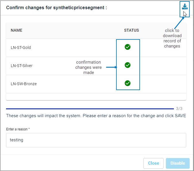 - Click ENABLE SELECTED / DISABLE SELECTED.