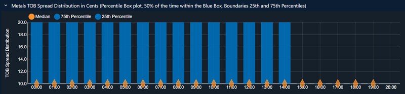 This feature has a similar display to EBS Market TOB spread distribution but displays TOB CME Group metals futures spreads.