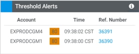 - Threshold Alerts: View threshold breach alerts for Inline Credit Controls and / or Spot FX. For the current day, alerts are sorted in descending order starting with the most recent.