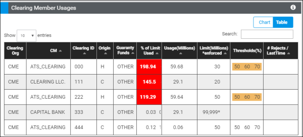 Account / Clearing member usage between 81-90% appears Dark Orange