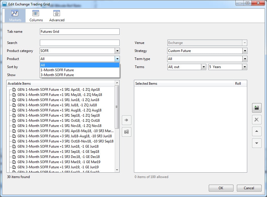To view SOFR products, you can set up a new futures grid or add the contracts to an existing futures grid. Do this by right clicking on the new or existing grid and selecting, “edit view.”